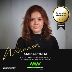 Maria Ronda, Social Media & Community Strategy Manager at FUGA, has been honored with the Emerging Marketer Award at the annual Music Ally Marketing Awards. The Emerging Marketer Award recognizes outstanding rising talent who have demonstrated innovation, creativity, and effectiveness in the global music marketing landscape.